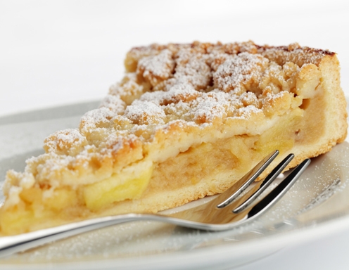 Für einen Apfelkuchen kann man unter die Äpfel auch eine Hand voll Rosinen mischen.
